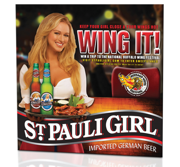 When we design promotions and sweepstakes, they are fresh and innovative, and they make sense for the target. What gets your customer to stop, look and participate are ideas like our St. Pauli girl "Wing It" tie-in to the national buffalo wing festival.
